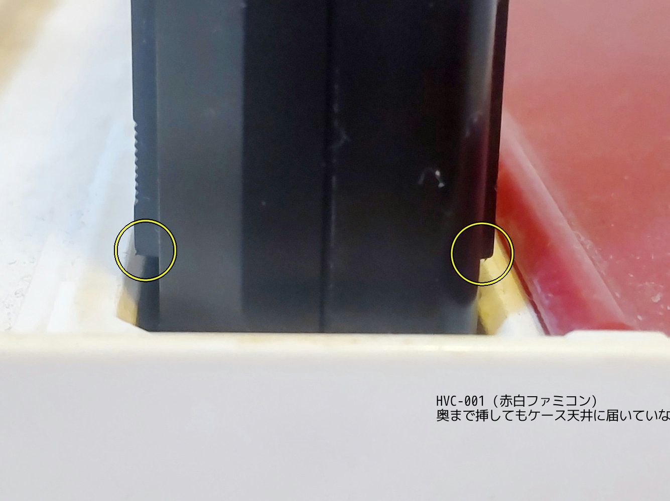 HVC-101 は周りを凹ませているので問題ない. 天井と高さは同じぐらいなのでくぼみがないと当たる. HVC-001 はカセットの押し込みに対してのケースの高さが一番低く、ケースに干渉しない. | ||||